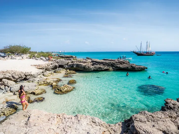After snorkeling, enjoy a delicious BBQ lunch and unlimited open bar on board. Soak up the sun on the spacious deck, relax in the shade near the bar, or try the rope swing if you're feeling adventurous. The friendly crew keeps the energy high with fun tricks and top-notch service throughout the cruise. All gear is included, and it’s recommended to arrive 30–45 minutes early at MooMba Beach for check-in and boarding. Advance reservations are highly encouraged for Aruba’s most popular sailing excursion.