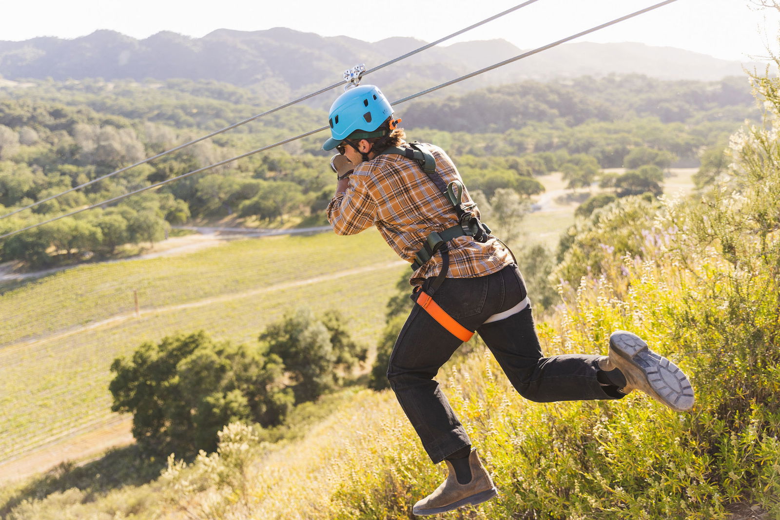 Soar over the valleys, oaks, mountainsides, and vineyards of the Santa Margarita Ranch. On this tour enjoy six distinct ziplines spanning more than 7,500 total feet. Couples will create an incredible memory as they ride side-by-side on the Double Barrel line spanning 2,800 feet. You will also take a walk on the wild side between your first and second zip lines, as you cross a deep canyon along a narrow suspension bridge.