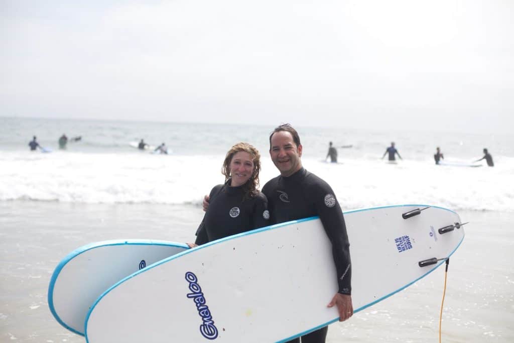 Lessons will be at a surf break, which is great for learning and catching long waves. It's well south of SB's busy downtown and in an area that's more secluded and reliable for quality waves. Couples will meet up along scenic PCH1 where the guides will get couples geared up in their very own wetsuit and a provided surfboard. Couples will then walk down to the beach to prepare for their surfing adventure! Lessons start with time on the beach going over surf techniques and etiquette before hitting the waves, but that will leave couples with a good hour in the water hitting the waves. Instructor's mission every time is to get them standing up on their first wave! The guides will do everything in their power to keep couples comfortable, confident, and celebrating the steps they take towards learning to surf! Duration: 1.5 hours