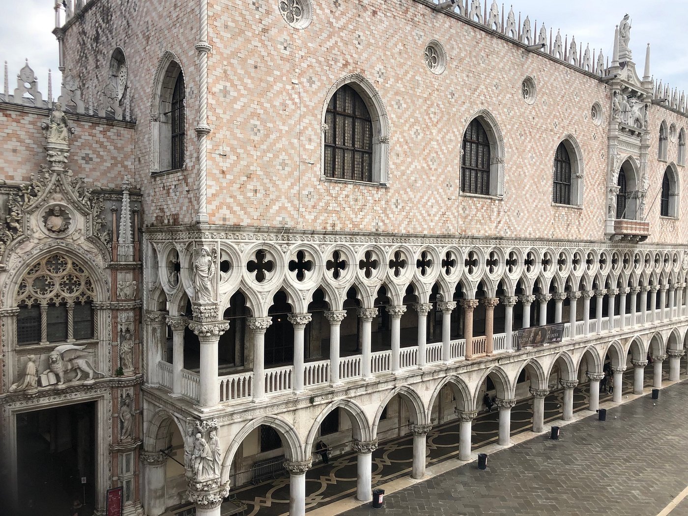 By the corner of the covered gallery/arcade by St mark’s bell tower (outside), Venice, Italy