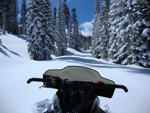 See the gorgeous Lake Davis recreation area by snowmobile, a true winter wonderland...with no people!