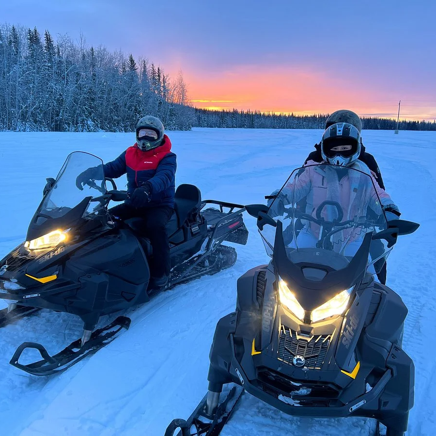 Your guide will lead you through a true winter wonderland so you can explore the frozen rivers, lakes, and snow-covered mountains around the Chena Lakes recreation area outside of North Pole. You will start your day with a safety briefing, gear fitting, and an introduction to the snowmobile operation at our office. This will take approximately 30 minutes. After this, you will be ready to explore the breathtaking surroundings by snowmobile.