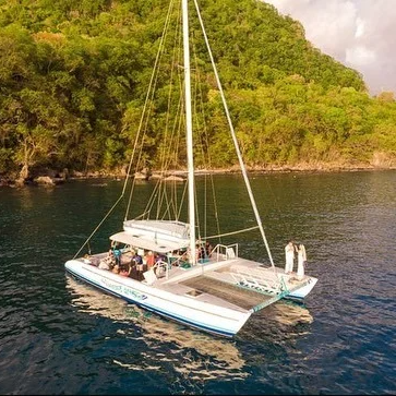 Board a catamaran for a relaxing sail to Soufriere where couples will embark on a hike to Sapphire Waterfalls, taking them deep into the lush rainforest to soak in its healing mineral waters. Begin with a trip through an 18th-century estate, where couples will pass by a replica Carib village and the historic plantation house. The nature trail enters the lush tropical rainforest and passes mineral streams and pools on the way to Sapphire Falls, a 35-foot mineral waterfall fed from the volcano. Here, couples wll have some amazing photo opportunities and enjoy some refreshing seasonal fruits. After the hike, sit down and relax with nature while enjoying a Creole buffet lunch at the Morne Coubaril Estate plantation house. Lunch is prepared using local provisions and vegetables grown on the estate and of course, includes dessert. Return to the boat and head back up the coast for a stop to swim, where snorkeling gear is provided for couples if they'd like to check out the underwater world. Duration: 8.5 hours