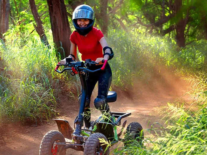 But that's not all, the adventure is all about camaraderie! Share the excitement with a friend or family member as you both hop on your stand-up ATV. Together, you'll drive the technical trails and untamed terrain, creating memories that will last a lifetime!