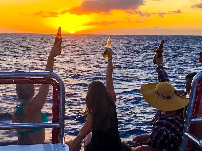 When someone says “Hawaii”, the image of an iconic sunset over the city by the sea, Waikiki, pops into mind almost subconsciously. Enjoy the traditional land-based viewpoints of Honolulu and a unique ocean perspective. Come aboard the Haleiwa Queen and relax with your crew as the skies turn to orange, purple, and pink behind downtown Honolulu during our sunset tour.