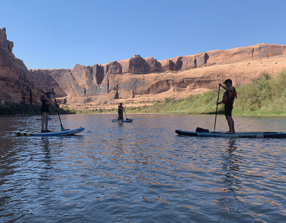 You'll be transported up river road for a distance of up to 12 miles. Equipped with top-notch boards, paddles, and PFDs, you'll set off down the Colorado River at your own pace. When you return to Lion’s Park, your car awaits, allowing you the freedom to take your time, soak in the scenery, and relish every moment of paddling. Load the boards onto your vehicle with the provided straps and return them to our shop in town.