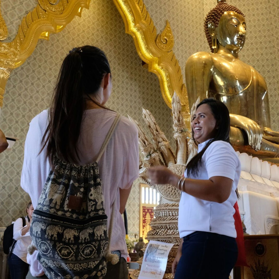 Step into the grandeur of the Grand Palace, where stunning architecture surrounds the sacred Wat Phra Kaew, Thailand's spiritual heart. Then, visit Wat Pho, home to the iconic reclining Buddha and the birthplace of traditional Thai massage. Your tour ends here, where you can continue exploring or get directions back.