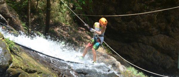 Canyoning or Canyoneering is an exciting multi-sport adventure that is gaining popularity for the masses. This tour combines ziplining, waterfall rappelling, and hiking along with optional swimming and cliff jumping as high as 25 feet. Canyoning is no longer just for die hard adventurers and expert climbers anymore. At Jaco Canyoning, couples have the opportunity to experience true Canyoning even if they have never been in a harness. Just 20 minutes from Jaco, couples will arrive at the base to start their adventure. They'll hop in our 4×4 safari vehicle and drive up the mountain over 1000′ to get to the private reserve. The guide will stop along the way to point out interesting flora and fauna and the incredible views of the ocean and countryside. When couples arrive at the top, they will be outfitted with the latest and safest gear from Black Diamond in the USA. Couples will be instructed on the safe and proper use of our equipment then begin their five-minute hike to the first zipline. After two "zips" over the river, couples will do a dry training rappel to get familiarized with the proper technique. A short hike down river and couples will have some swimming and cliff jumping (4-25′) opportunities if they desire! Now it is time to get wet! Four rappels through the waterfalls and couples will do it all on their own. At all times they will be "safe and backed up" by their guides! After a short climb up, couples will exit the canyon and hike 15-20 minutes back to the truck. Be sure to bring a swimsuit, water, shoes that can get wet, and cash for tips, etc. Duration: 4 hours and 30 minutes
