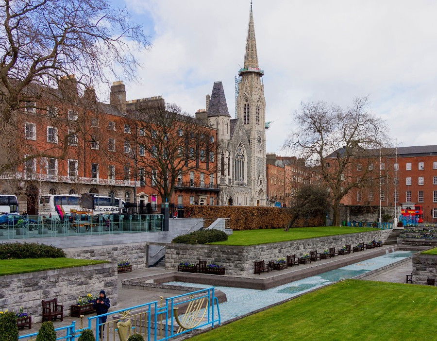 After walking up O'Connell Street, lined with the statues of those who made significant contributions to the fight for Independence, you will end the tour at the Garden of Remembrance, where the lives of all the Irishmen who fought for freedom are commemorated. You'll see the Irish flag, with the green color representing Catholics, orange for protestants, and white: a symbol of hope, that both can live together in peace.