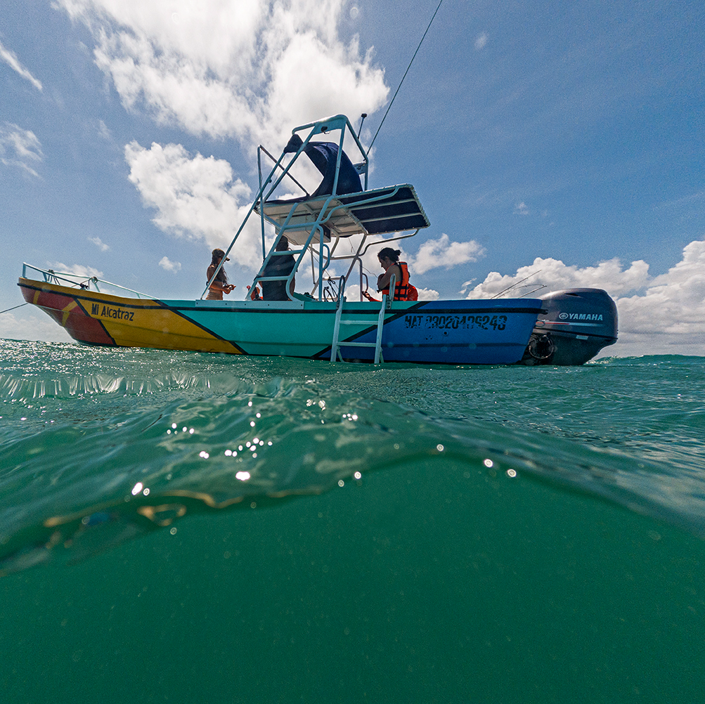 Your adventure begins at the Whale Shark pier, where you'll set off to sea, heading to the best fishing spots in the area. Your captain and guide will teach you the ancient techniques of bottom fishing (twine line, no rods), showing you how to catch small and medium-sized fish like sea bass, grouper, snapper, blonde, chac chi, mojarra, and more. You can enjoy your catch as delicious ceviche prepared right on the boat, or take it with you at the end of the tour to be cooked to your liking.