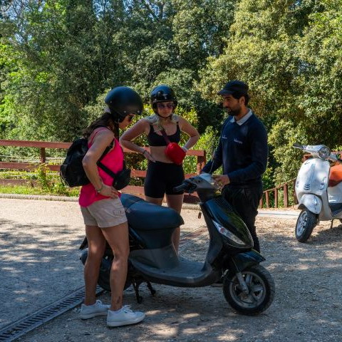 A 6.5-hour Vespa tour through vineyards, medieval villages, and wineries, with tastings and a traditional Tuscan meal!