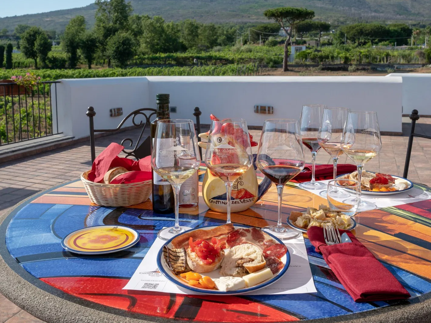 Then, head towards a winery located within the Vesuvius National Park. The experience begins with a walk through the vineyards, offering breathtaking views of the Gulf of Naples, Sorrento, and the island of Capri, where you can capture stunning souvenir photos. Then visit the cellars, where the wine production methods will be explained. At the end, a tasting of Vesuvio Lacryma Christi wines awaits you, accompanied by a panoramic light lunch!