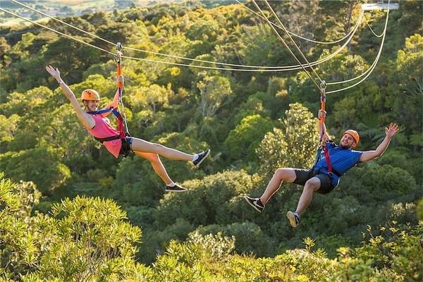 From Auckland, arrive by ferry to Waiheke then fly through the air on giant flying-fox ziplines followed by lunch and stops at famous Waiheke wineries.
