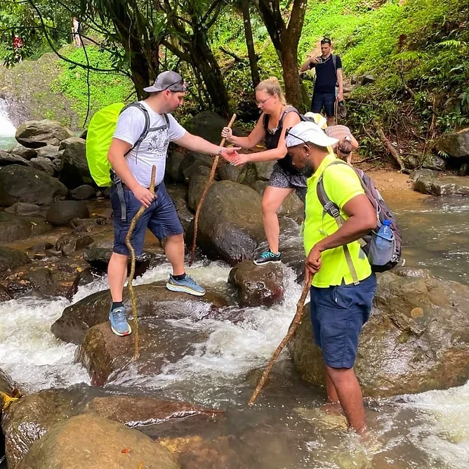 This experience allows you the comfort and relaxation to embrace nature without the risk of any dangerous wildlife. You will visit the Grand Etange Rainforest which is home to The Crater Lake and the Mona Monkeys. There are plenty of nature trails to explore. Enjoy a 25-minute nature hike through the rainforest, leading to breathtaking waterfalls which are perfect spots to stop for a swim.