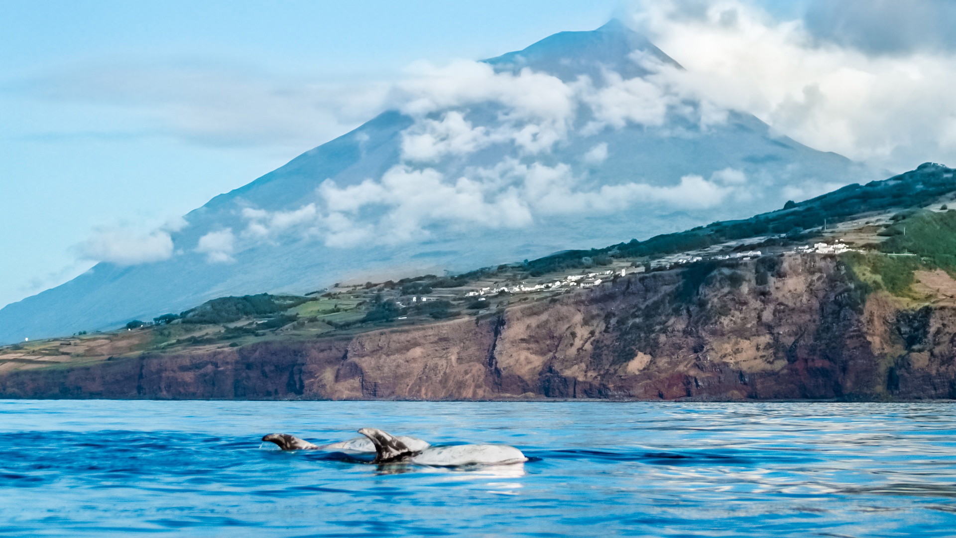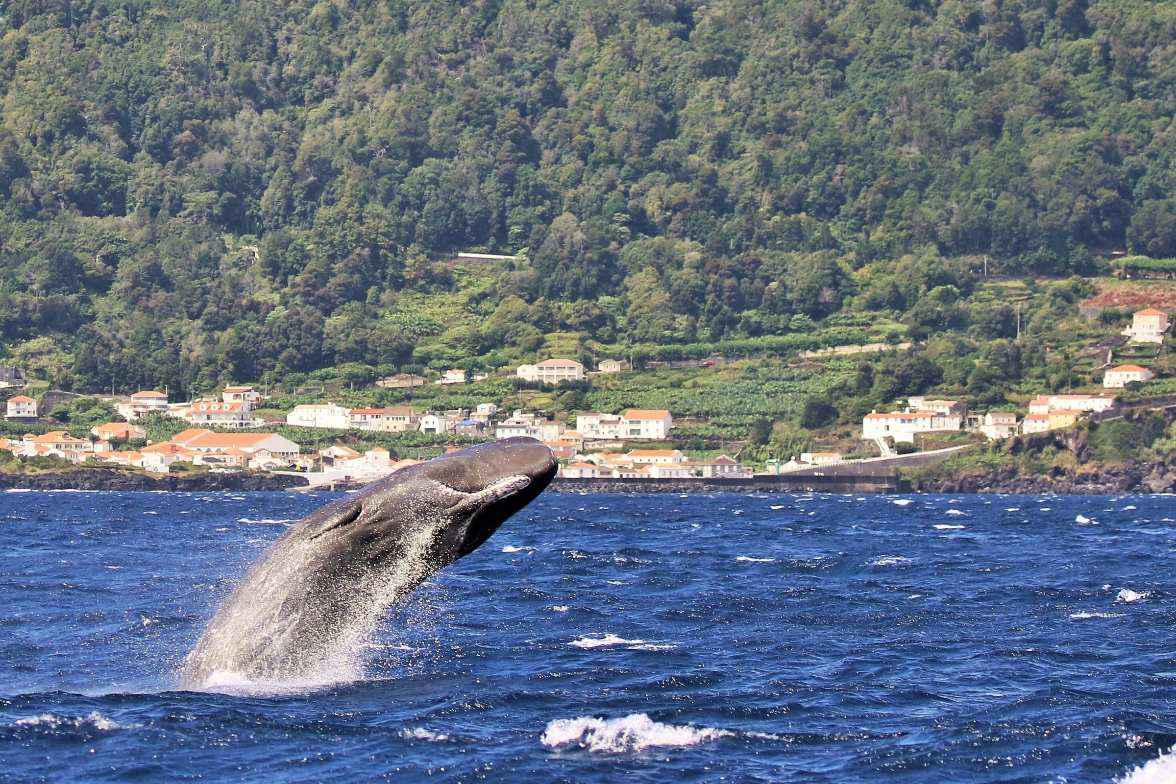 Just some miles off the Pico Island coast in the Azores, there are big slopes reaching 3,000m deep in the Atlantic Ocean. This is very favourable for cetaceans, who sometimes appear very close to the island. Other characteristics such as hydrothermal vents and submarines mounts create the perfect environment for whales and dolphins. Basically, Pico Island is a great whale-watching spot in the Azores.