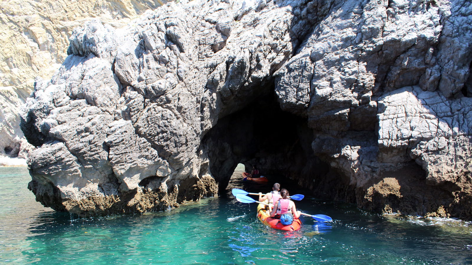 Offering a unique perspective over the coastline, this tour includes a stop at the Ribeiro de Cavalo beach, one of the most beautiful wild beaches in Portugal. Within an hour's distance from Lisbon, this is a great day experience. Using very stable double-seat sit-on-top Kayaks, you will comfortably and effortlessly paddle along these incredible landscapes.