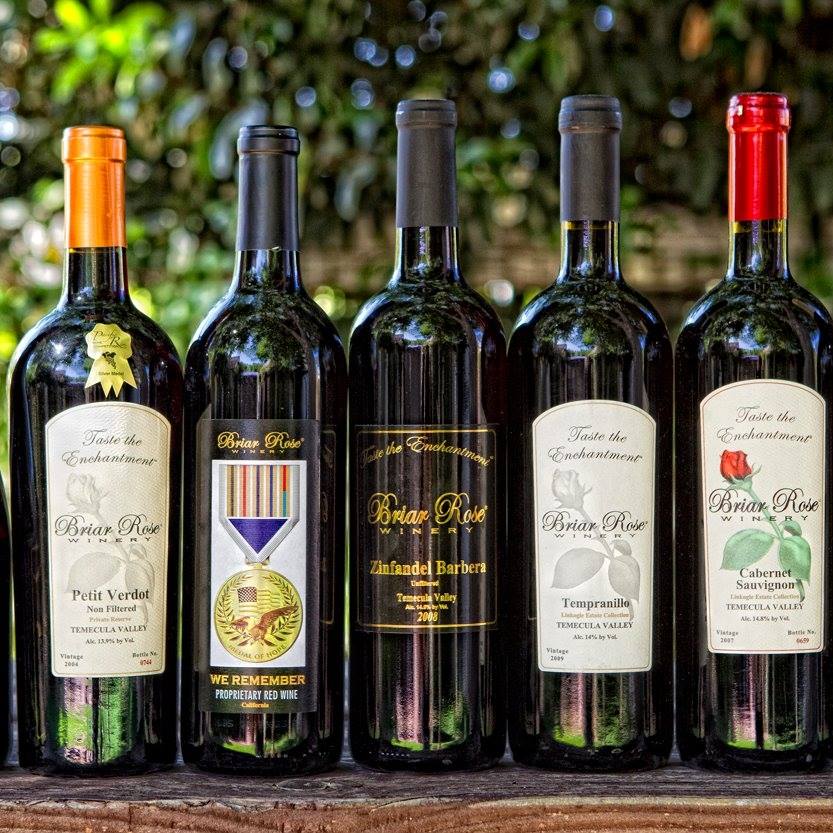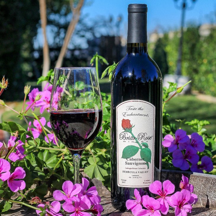 Enjoy this wine tasting experience of Briar Rose Winery's premier wine menu where you sample three whites and two reds. Their wines are handcrafted, small lot, premium, artisan wines made from the most intensely flavored grapes from their lush vineyard. This is the only seated wine tasting venue in Temecula, it's like a restaurant but with wine instead of food! Also enjoy wine education while you taste from the staff sommelier. You can choose between indoor and outdoor seating. The outdoor seating area is a popular English garden where you have the option to bring your own food. There is no need for you to stand at the bar to taste your wine, the server will come to you. Loosely Disney-themed, enjoy the life-size replica of Snow White's cottage, plenty of Disney artifacts, and more.