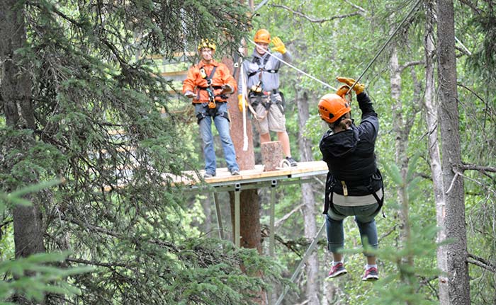 Experience this amazing piece of Alaska with our beautifully designed course of 9 ziplines, 3 suspension bridges, a spiral staircase and rappel. Your zipline adventure begins at the office in downtown Talkeetna. Check in with the friendly local staff and board the DZT shuttle for a scenic 3-mile drive to the forested ridges above the mighty Susitna River Valley. Your guides will share Denali Zipline Tour Educational Moments about the boreal forest and topographical features including ridges, ravines, kettle ponds, and the braided Chulitna and Susitna valleys. The history of Talkeetna runs deep and includes flying and mountaineering in the Alaska Range, gold mining and the quirky local characters.